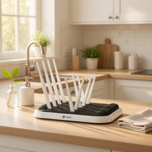 Praktičan i moderan Kalei stalak za sušenje bočica i dodataka za hranjenje beba, idealan za svakodnevnu uporabu. Ovaj kompaktni stalak omogućava odvajanje bočica i dudica, čime se sprječava zadržavanje vlage i ubrzava proces sušenja. Lako se sastavlja i čisti, a njegov dizajn štedi prostor u kuhinji. Idealno rješenje za mame i tate koji žele osigurati maksimalnu higijenu za svoje mališane.